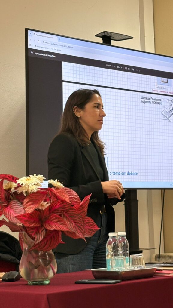 A sessão teve como objetivo apoiar e enriquecer o trabalho das listas candidatas, promovendo a reflexão sobre a importância da literacia financeira e o papel dos jovens na participação cívica e democrática. Ao longo da palestra, a Dr.ª Marina Gonçalves destacou a relevância de decisões financeiras conscientes e informadas, bem como a necessidade de uma cidadania ativa e responsável.